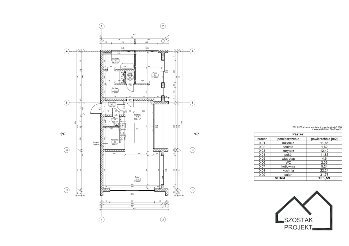 Parametry: 103,59m2 powierzchni użytkowej
